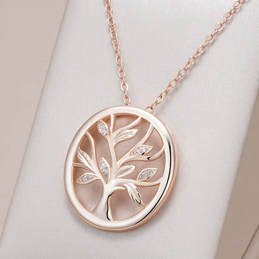 Hot 585 Rose Gold Color Lucky Tree Pendant Necklace for Women Fashion Natural Zircon Pendant Daily Fine Vintage Jewelry